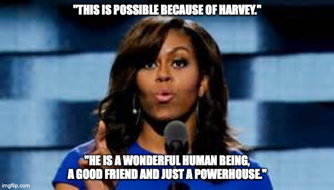 And of course there’s always darling Michele talking about serial rapist Harvey Weinstein…