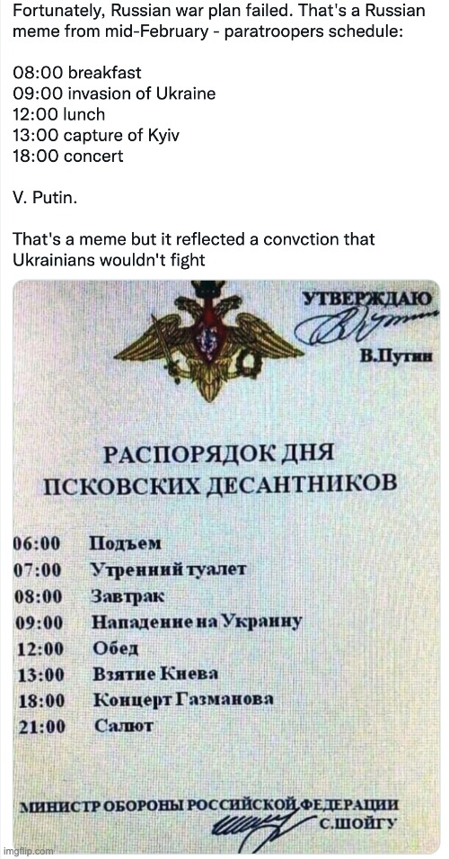 Perhaps Putin and his generals should have studied that operation, because it’s become apparent to everybody that the clever strategy has failed as it did then (it almost failed for the Germans in Crete in 1941 but they managed to hold Maleme Airfield. Even so their casualties were so high that they never attempted a large-scale paratroop attack again).