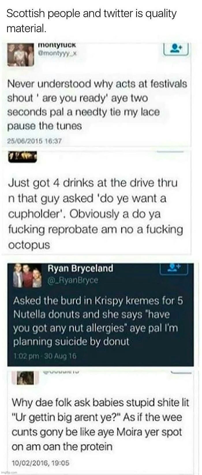 The Scottish are forgiven everything for their humour.