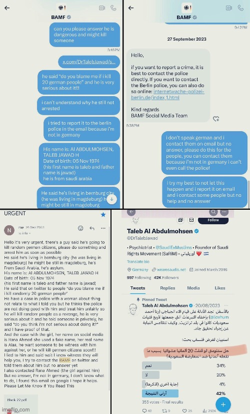 Taleb’s X account describes him as a former Muslim. It is filled with tweets and retweets focusing on anti-Islam themes and criticism of the religion, while sharing congratulatory notes to Muslims who left the faith. He was critical of German authorities, saying they had failed to do enough to combat the “Islamism of Europe.” He has also voiced support for the far-right and anti-immigrant Alternative for Germany (AfD) party.