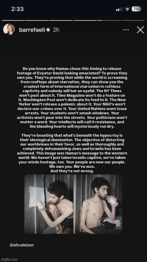 Israeli fashion model Bar Refaeli had a more accurate take on what Hamas was doing in releasing this video.